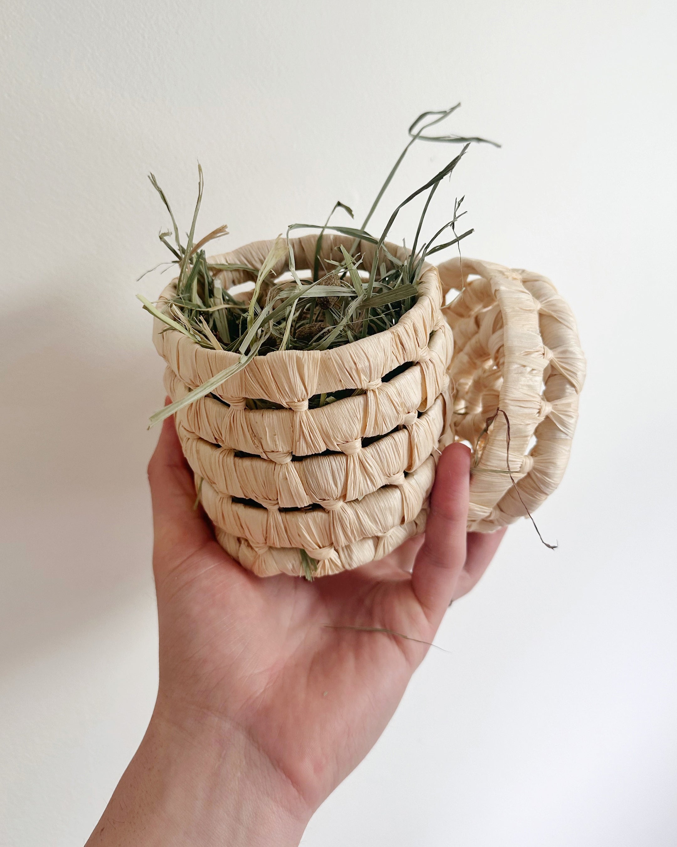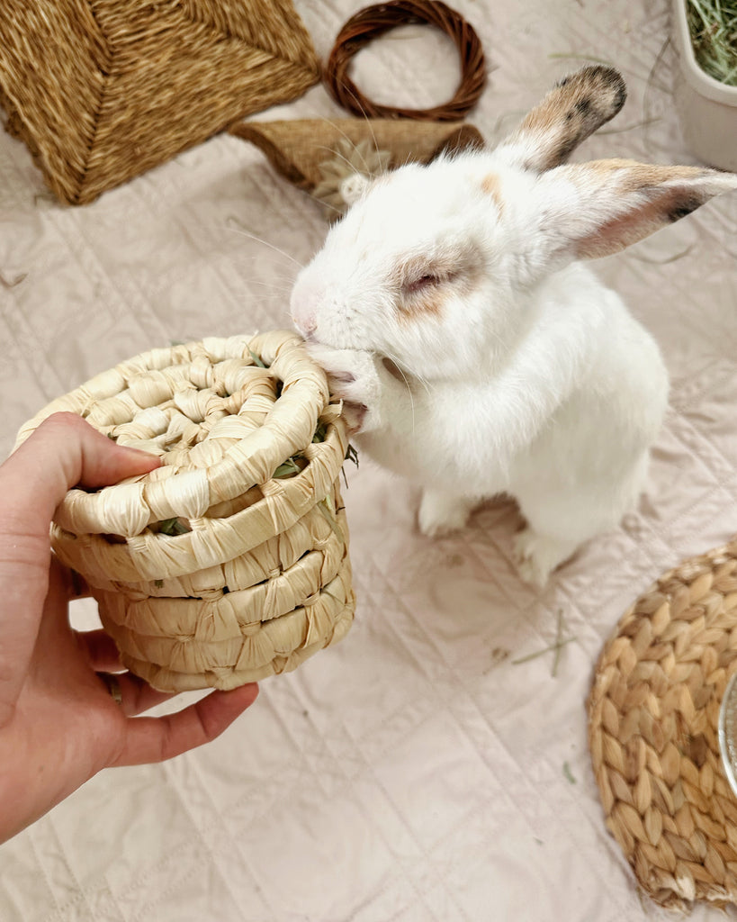 Encourage your bunny’s natural foraging instincts with these playful corn husk forage cups filled with our second cut timothy hay. They provide a fun, tasty challenge that keeps your furry friend entertained and mentally stimulated. Plus, they’re reusable! Just refill with your rabbit’s favorite hay, pellets, or veggies to keep snack time exciting again and again!