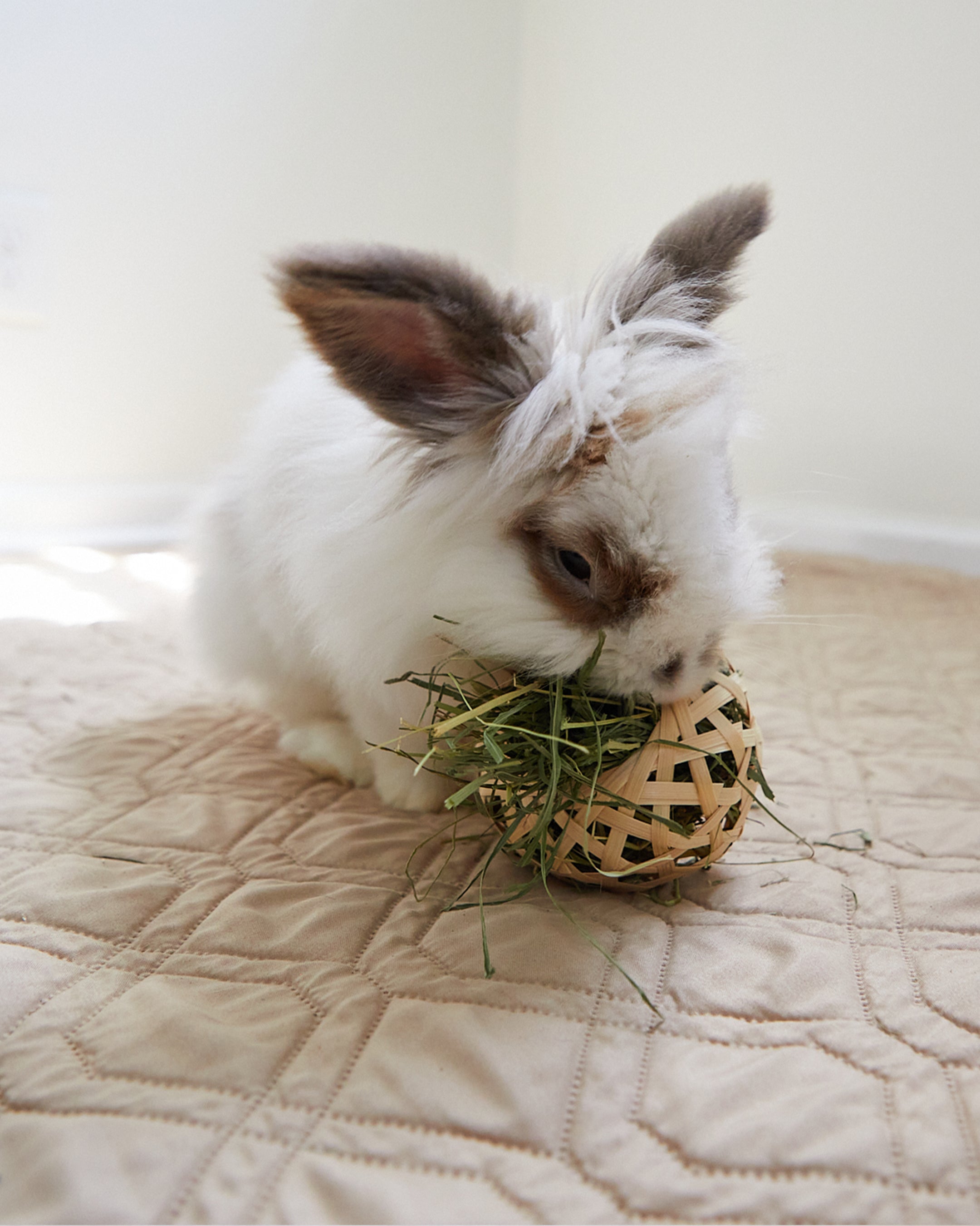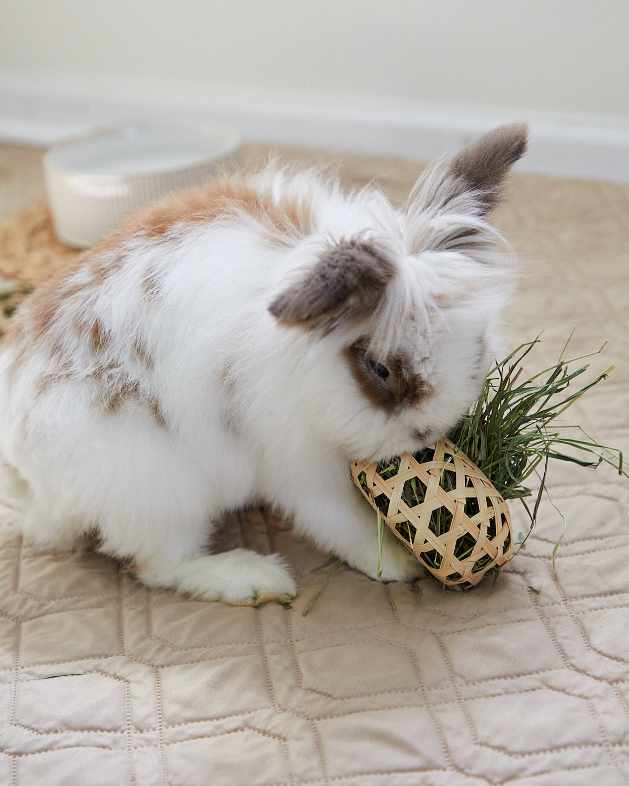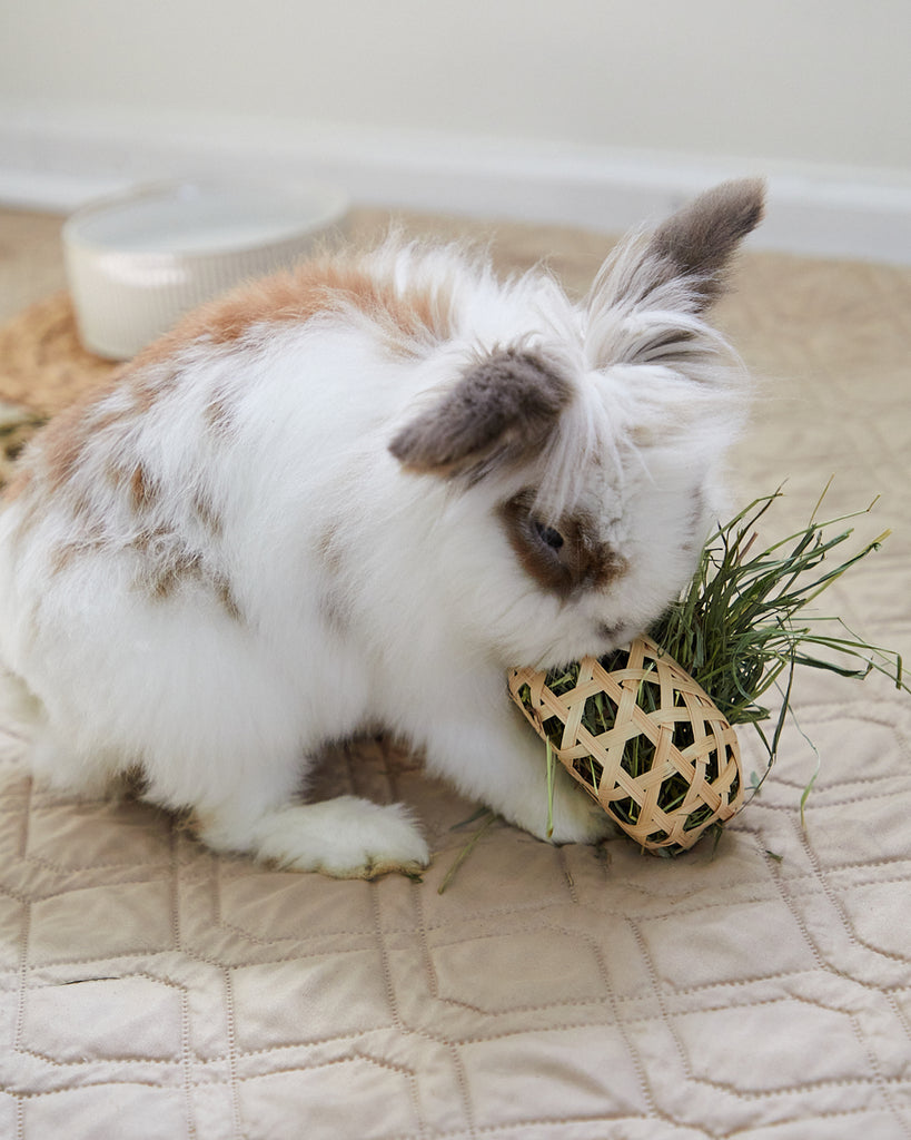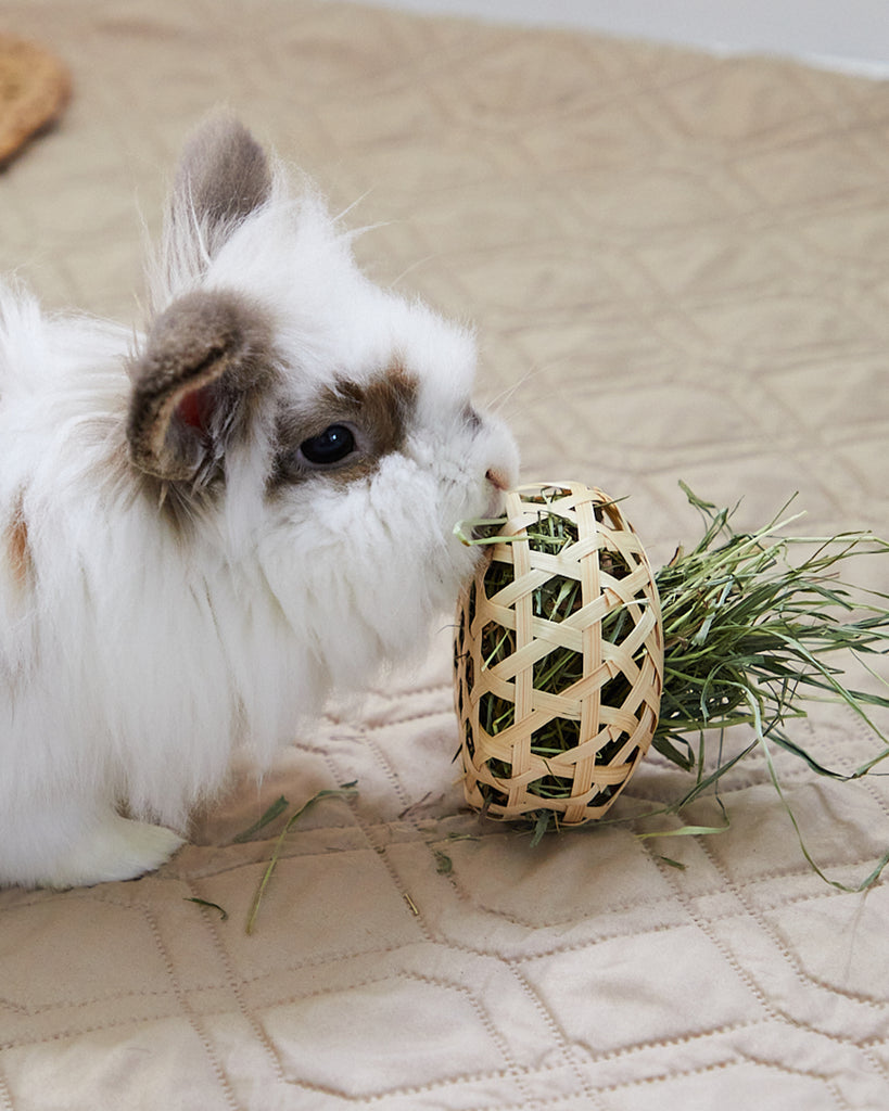 Keep your bunny busy and happy with the Bun-Fire! This braided wicker toy stuffed with nutritious timothy hay is perfect for encouraging natural foraging behavior. Rabbits will love nibbling through the hay while having a blast playing, making it an enjoyable and stimulating treat all in one.