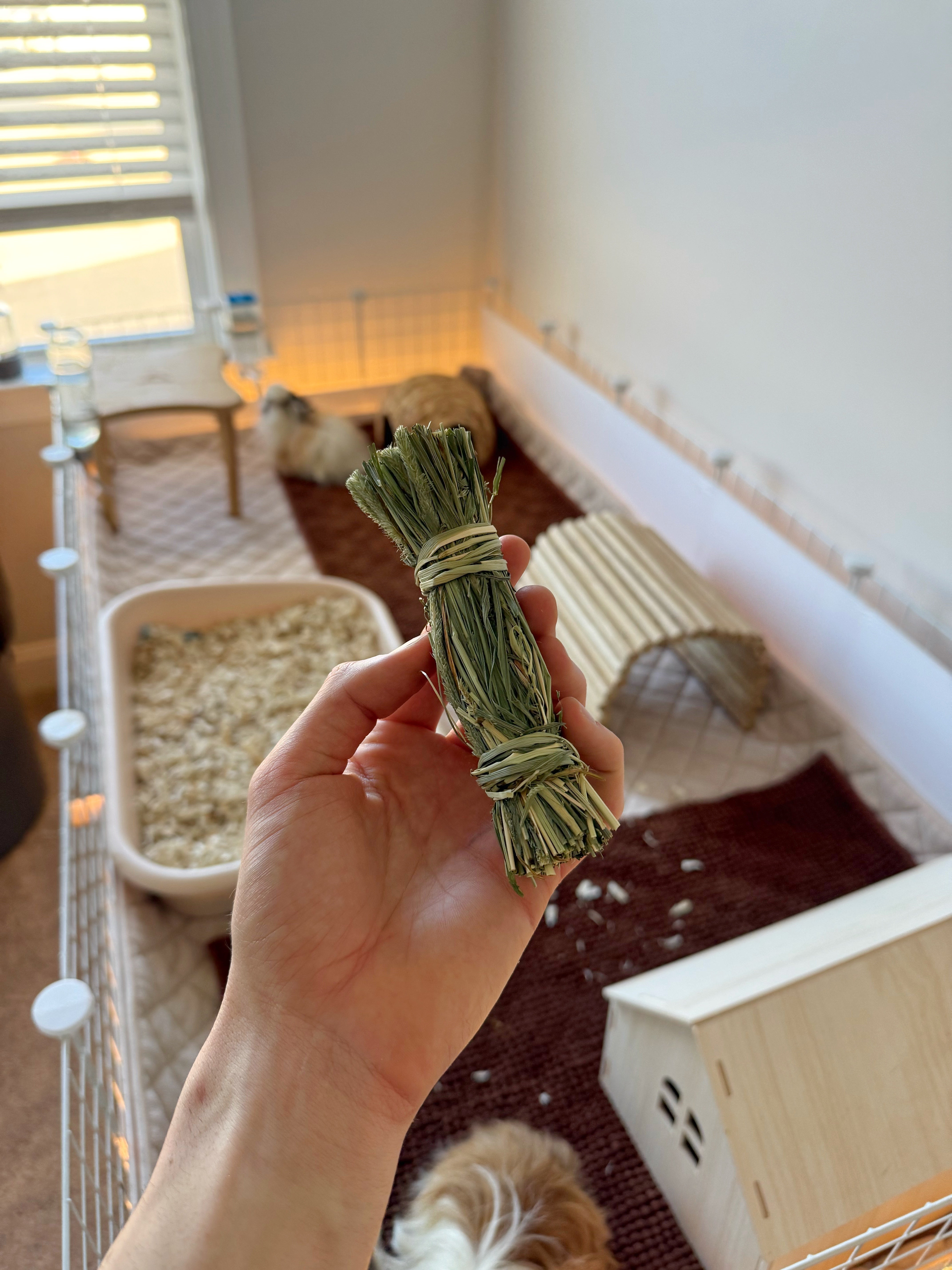 The Hay Roll-up the ultimate combination of entertainment and nutrition for your guinea pigs! Made entirely from 100% natural timothy hay, this rolled-up toy is perfect for chewing, nibbling, and keeping your furry friends busy.
